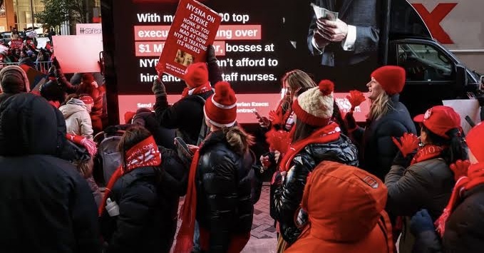 由於合約談判破局,紐約市三大醫療集團旗下超過1萬5000名護士12日清晨開始罷工。這是紐約市史上最大規模的護士罷工行動。